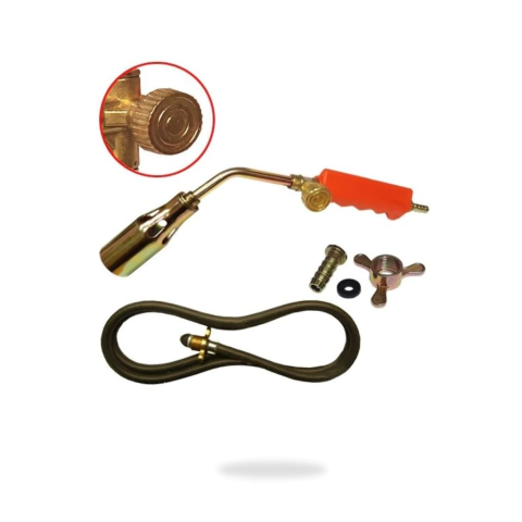 Soplete profesional diseñado para conectarse a garrafas de 10 kg, ideal para trabajos intensivos que requieren llama directa. Cuenta con gatillo de encendido rápido y perilla reguladora de caudal, que permiten un control total del fuego de forma segura y eficiente.